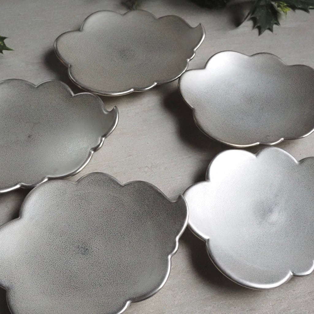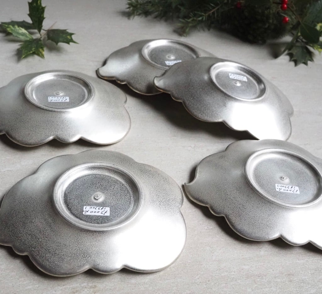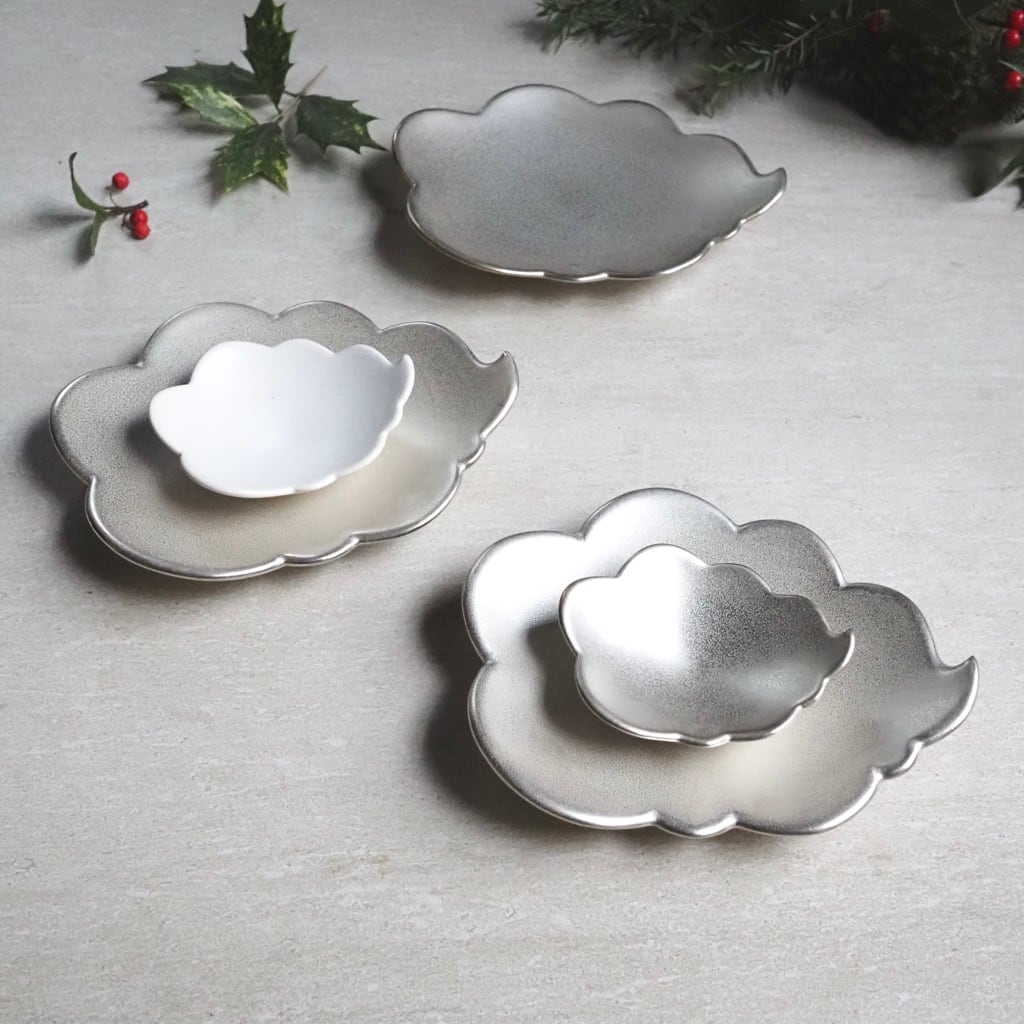 ユニークな形の銀彩のウンリュウの小皿。