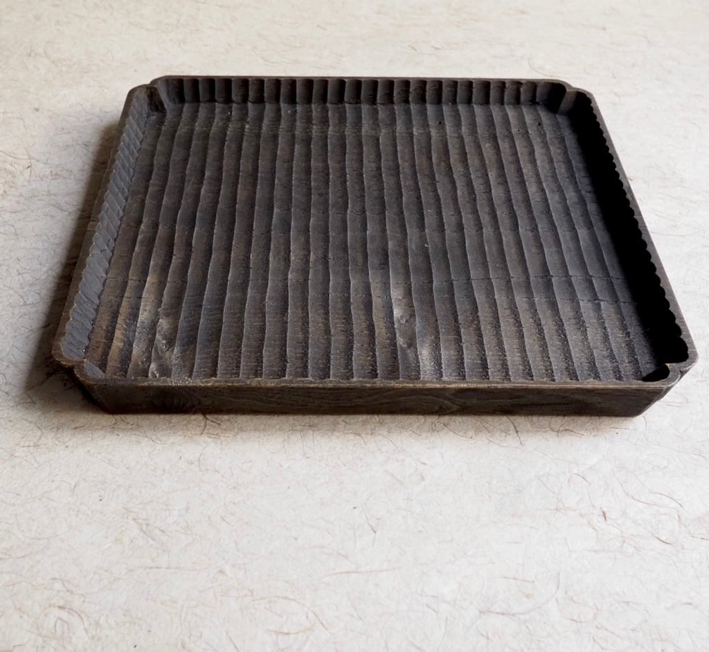 明野の小さなお盆や/入隅 我谷盆 栗 渋&墨染め オイルフィニッシュ