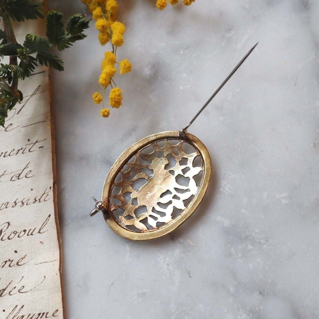 その情景をユニークに表現したかわいいブラスブローチ。