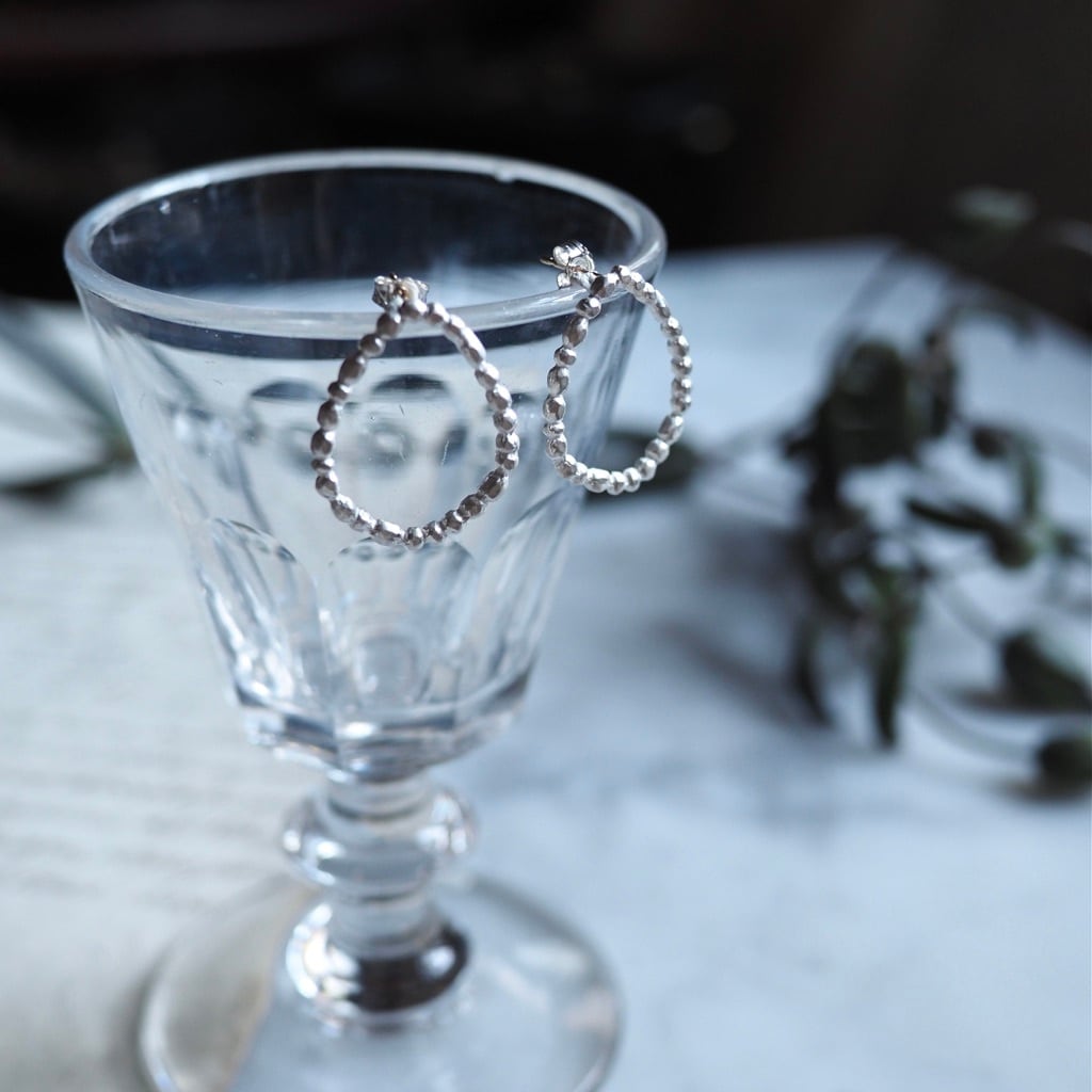 白くやさしい銀色。肌になじみやすく、軽やかな風合い。