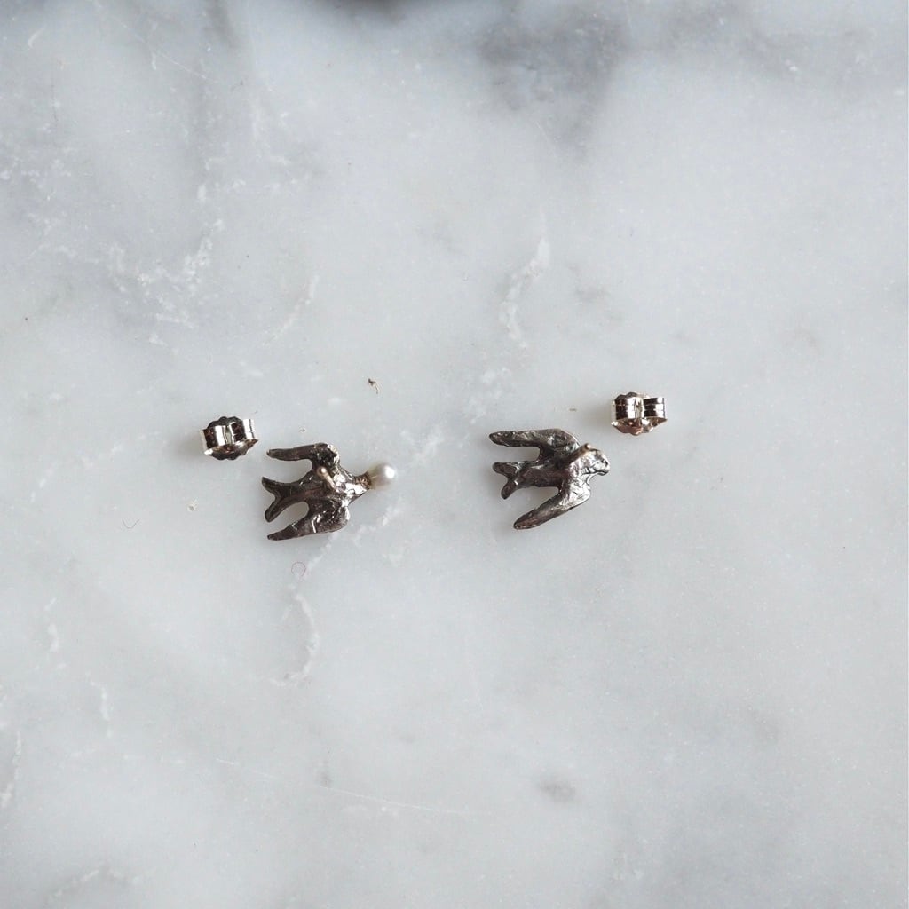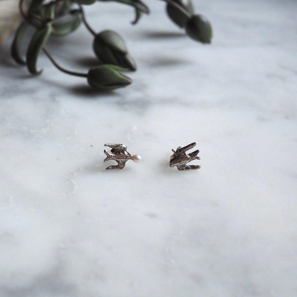童話の「ツバメと王子」を表現したシルバーピアス。